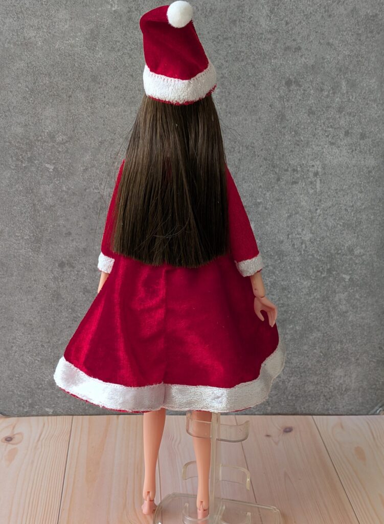 白のベロアがアクセントになっていて、まさに理想のmomokoDOLL(モモコドール)用サンタ服です。