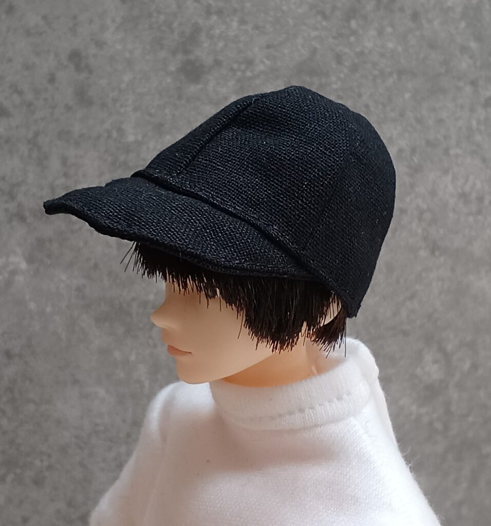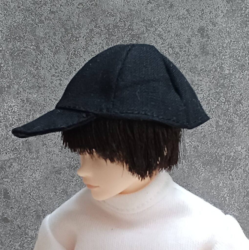 六分の一男子図鑑(エイト・ナイン)向けに、趣味で服や小物をハンドメイドしています。これまでTシャツやYシャツ、ズボンなどは他社ドール用の型紙を修正して作っていましたが、今回は初めて“帽子(キャップ)”の制作に挑戦しました。